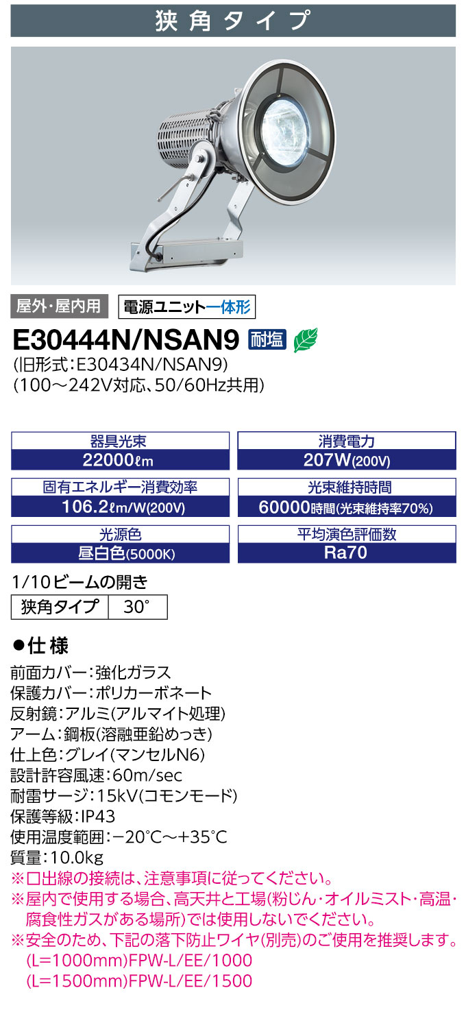 E30444N/LSAN9 || LEDÅê¸÷´ï ´äºêÅŵ¤ ¥ì¥Ç¥£¥ª¥Ã¥¯¥Õ¥é¥Ã¥É¥¹¥Ý¥é¡¼¥È 210W¥¿¥¤¥×¡ÚÅŸ»¥æ¥Ë¥Ã¥È°ìÂη¿¡Û ¿å¶ä¥é¥ó¥×1000WÁêÅö Åŵ忧(2700K) 19500lm Ra80 ¶¹³Ñ¥¿¥¤¥× IP43 Âѱö»ÅÍÍ AC100¡Á242V (µì:E30434N/LSAN9)¡Ú¼õÃíÉÊŽ¥Âå°úÉԲĎ¥¥¥ã¥ó¥»¥ëÉԲġÛ[br]
