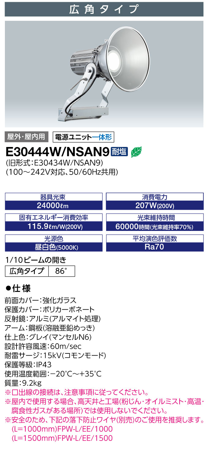 E30444W/NSAN9 || LEDÅê¸÷´ï ´äºêÅŵ¤ ¥ì¥Ç¥£¥ª¥Ã¥¯¥Õ¥é¥Ã¥É¥¹¥Ý¥é¡¼¥È 210W¥¿¥¤¥×¡ÚÅŸ»¥æ¥Ë¥Ã¥È°ìÂη¿¡Û ¿å¶ä¥é¥ó¥×1000WÁêÅö ÃëÇò¿§(5000K) 24000lm Ra70 ¹³Ñ¥¿¥¤¥× IP43 Âѱö»ÅÍÍ AC100¡Á242V (µì:E30434W/NSAN9)¡ÚÂå°úÉԲġÛ[br]¡¡210W¥¿¥¤¥× ÃëÇò¿§ ¹³Ñ¥¿¥¤¥×