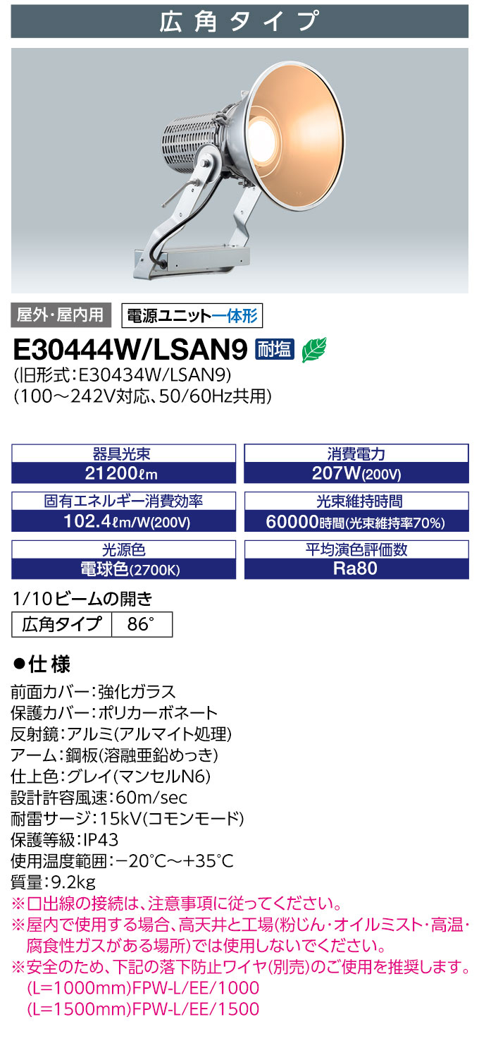 E30444N/LSAN9 || LEDÅê¸÷´ï ´äºêÅŵ¤ ¥ì¥Ç¥£¥ª¥Ã¥¯¥Õ¥é¥Ã¥É¥¹¥Ý¥é¡¼¥È 210W¥¿¥¤¥×¡ÚÅŸ»¥æ¥Ë¥Ã¥È°ìÂη¿¡Û ¿å¶ä¥é¥ó¥×1000WÁêÅö Åŵ忧(2700K) 19500lm Ra80 ¶¹³Ñ¥¿¥¤¥× IP43 Âѱö»ÅÍÍ AC100¡Á242V (µì:E30434N/LSAN9)¡Ú¼õÃíÉÊŽ¥Âå°úÉԲĎ¥¥¥ã¥ó¥»¥ëÉԲġÛ[br]