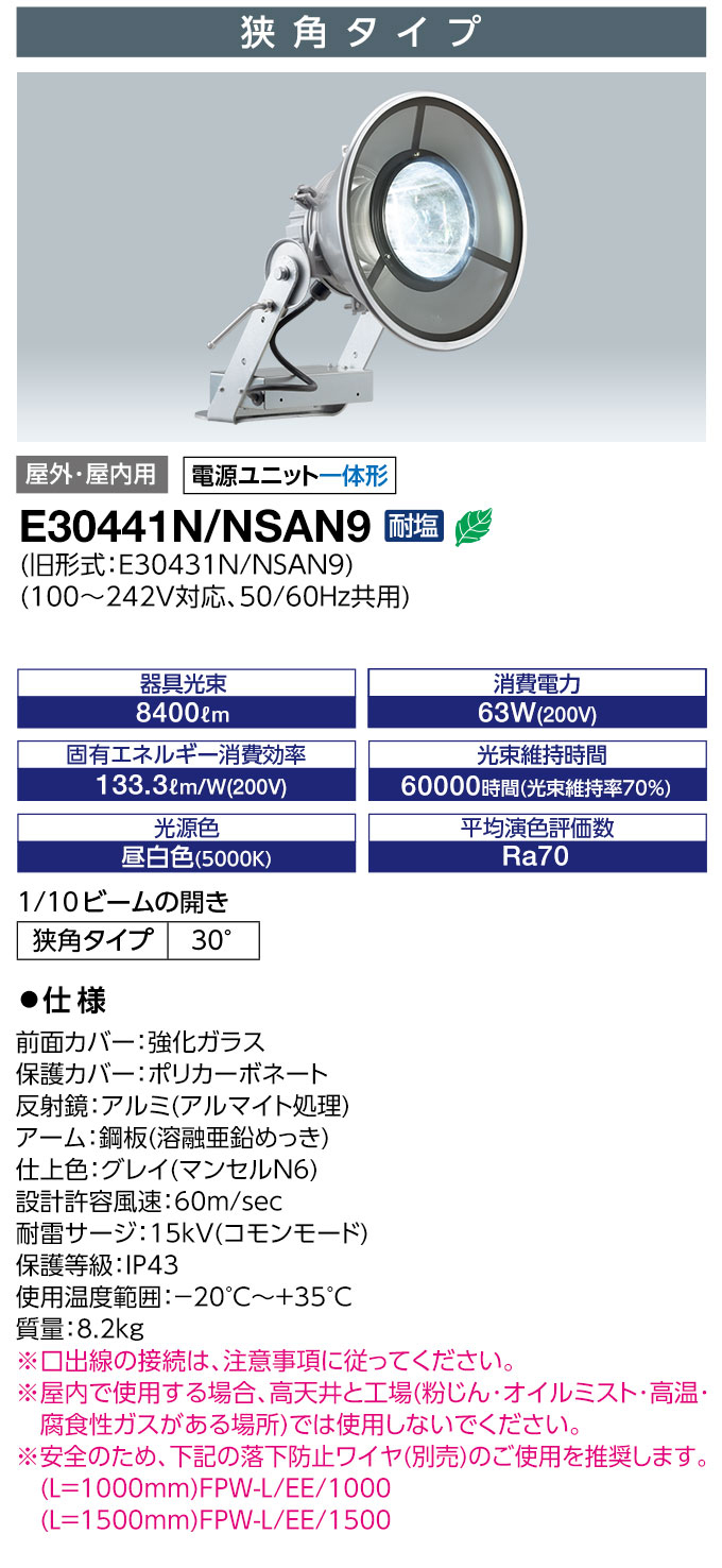E30441W/NSAN9 || LEDÅê¸÷´ï ´äºêÅŵ¤ ¥ì¥Ç¥£¥ª¥Ã¥¯¥Õ¥é¥Ã¥É¥¹¥Ý¥é¡¼¥È 65W¥¿¥¤¥×¡ÚÅŸ»¥æ¥Ë¥Ã¥È°ìÂη¿¡Û ¿å¶ä¥é¥ó¥×250WÁêÅö ÃëÇò¿§(5000K) 8700lm Ra70 ¹³Ñ¥¿¥¤¥× IP43 Âѱö»ÅÍÍ AC100¡Á242V (µì:E30431W/NSAN9)¡ÚÂå°úÉԲġÛ[br]