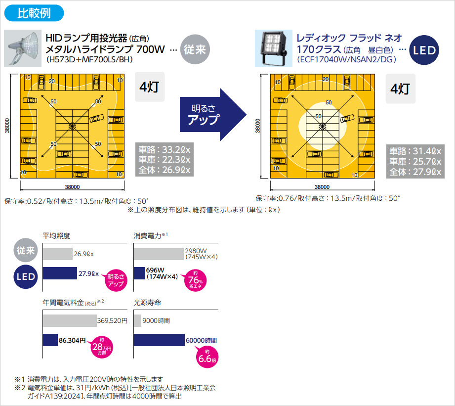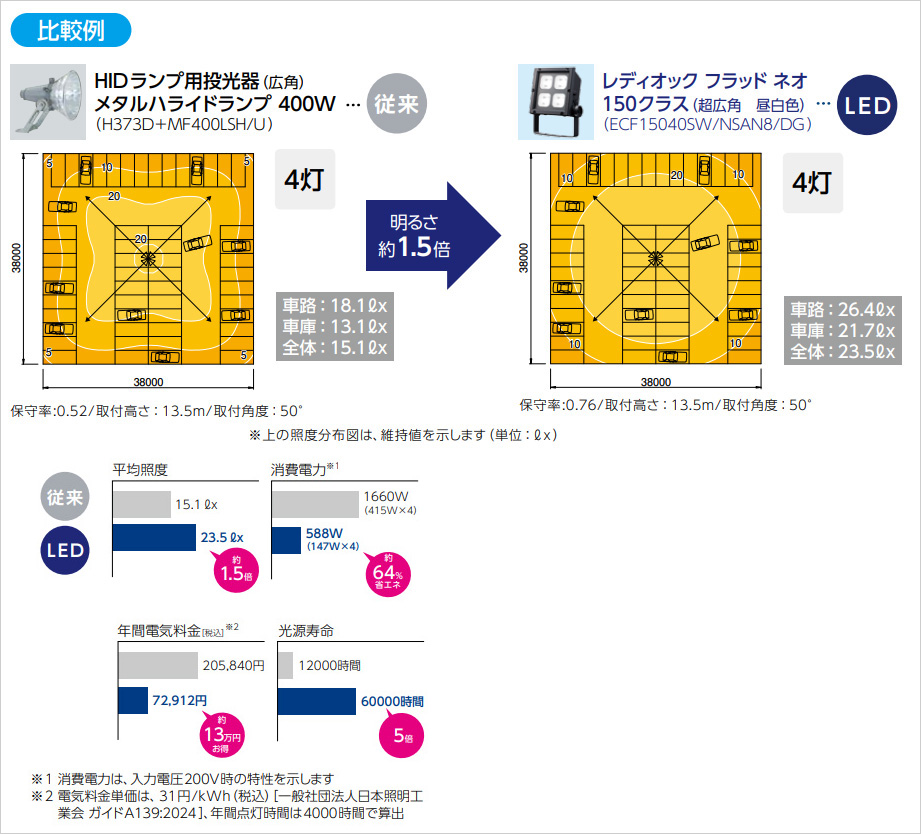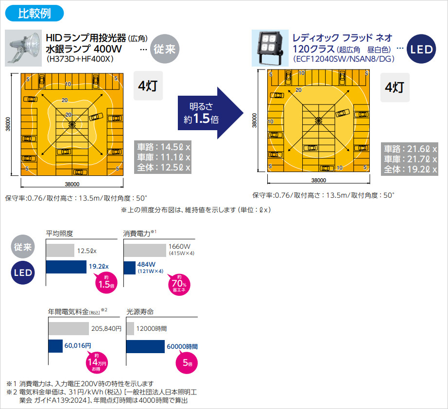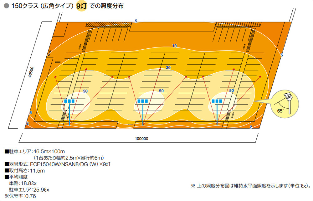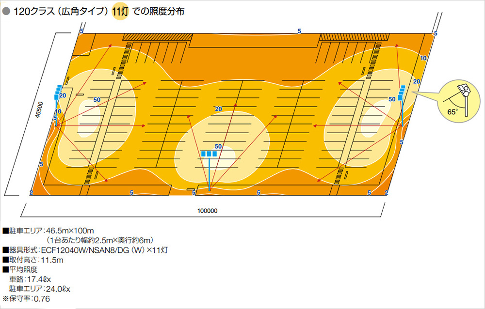 約100台の駐車場 照明器具配置例 経済比較例