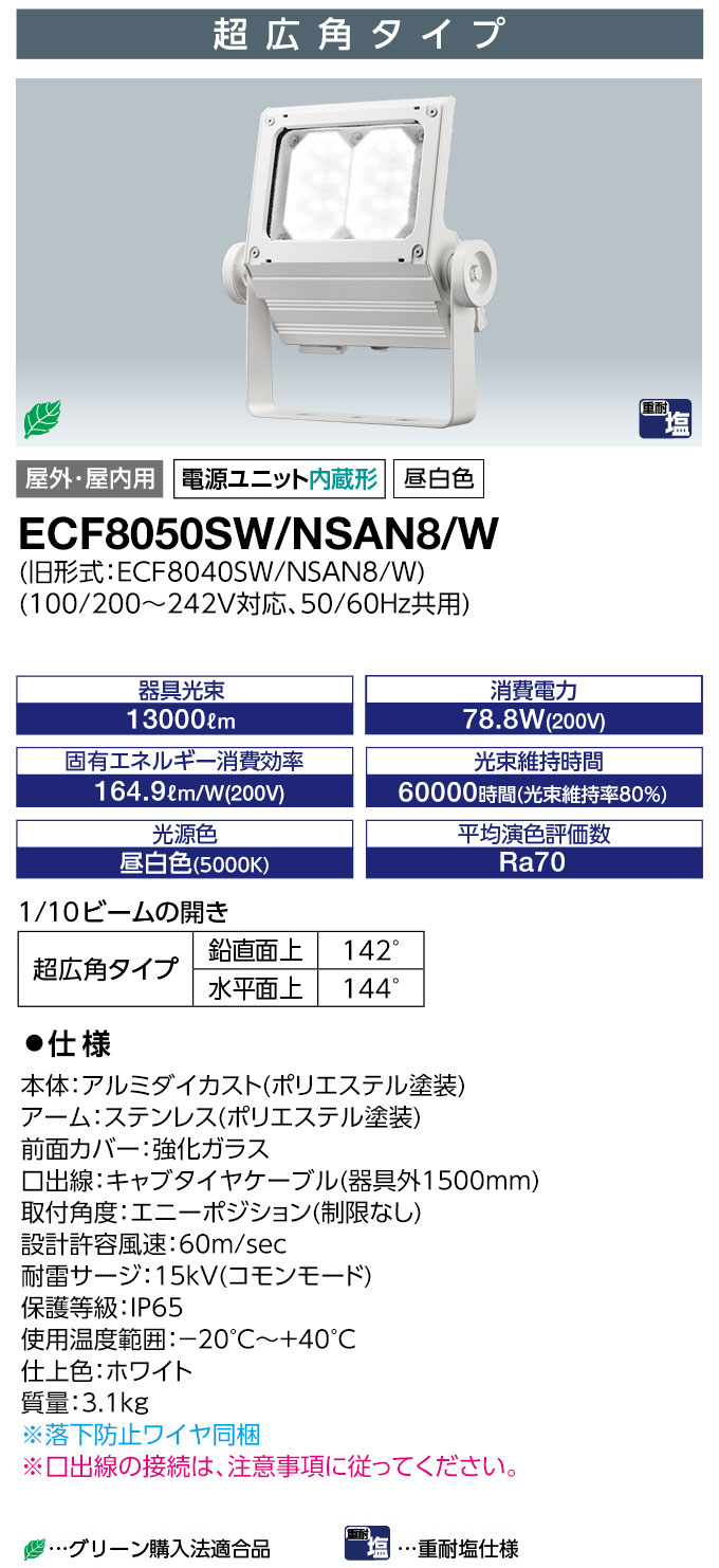 ECF8050SW/NSAN8/W + FA17/W || <Ãæ·¿´ÇÈÄÍÑLEDÅê¸÷´ïÂæºÂ¥»¥Ã¥È>´äºêÅŵ¤¡Ú¥ì¥Ç¥£¥ª¥Ã¥¯¥Õ¥é¥Ã¥É¥Í¥ª[80¥¯¥é¥¹]͹³Ñ¥¿¥¤¥× ÃëÇò¿§ 13000lm ÅŸ»Æâ¢ IP65¡Û+¡Ú¥Õ¥é¥ó¥¸:¦Õ124¡ßH34mm¡Û²°Æâ³°·óÍÑ ¥Û¥ï¥¤¥È (µì:ECF8040SW/NSAN8/W)[br]