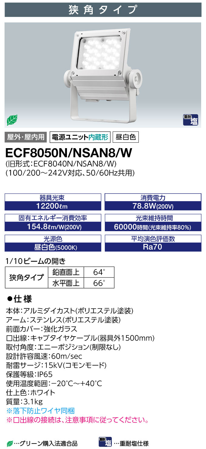 ECF8050N/NSAN8/W + FA1/W || <Ãæ·¿´ÇÈÄÍÑLEDÅê¸÷´ïÂæºÂ¥»¥Ã¥È>´äºêÅŵ¤¡Ú¥ì¥Ç¥£¥ª¥Ã¥¯¥Õ¥é¥Ã¥É¥Í¥ª[80¥¯¥é¥¹]¶¹³Ñ¥¿¥¤¥× ÃëÇò¿§ 12200lm ÅŸ»Æâ¢ IP65¡Û+¡Ú¥Õ¥é¥ó¥¸:¦Õ94¡ßH70mm¡Û²°ÆâÍÑ ¥Û¥ï¥¤¥È (µì:ECF8040W/NSAN8/W)[br]